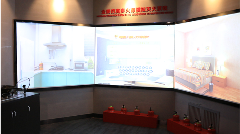 模擬滅火演練系統(tǒng)設(shè)置多個(gè)場景,每次隨機(jī)進(jìn)入一個(gè)場景,因不同物質(zhì)引發(fā)的火災(zāi)模擬視頻,體驗(yàn)者在觀看視頻后,分析可燃物起火原因、火災(zāi)類型等,拿起面前的仿真化滅火器,進(jìn)行火情撲救;了解滅火器的使用方式、適用火災(zāi)類型、用量和可用時(shí)間等。