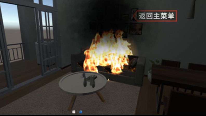 體驗人員在90平方的房子中,體驗人員可以在廚房、客廳、臥室移動,三個房屋空間中存在許多消防隱患,體驗者需要一一指出。