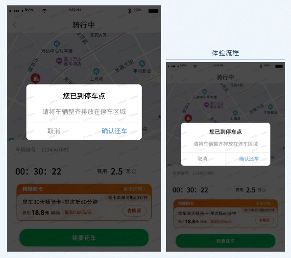 騎行結(jié)束后,點擊APP上的“還車”按鈕,車鎖自動關(guān)閉,系統(tǒng)提示“還車成功”,體驗圓滿結(jié)束。