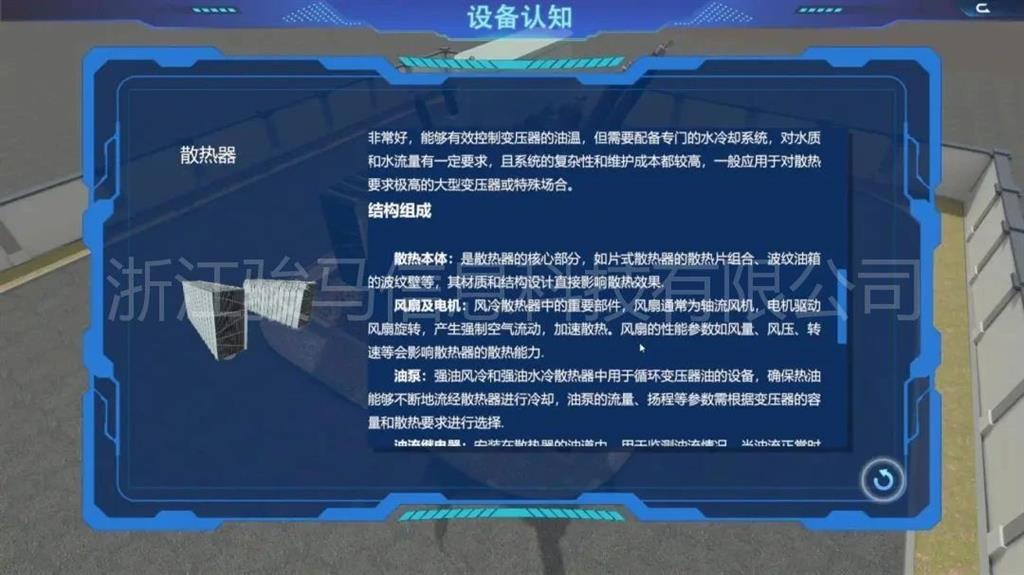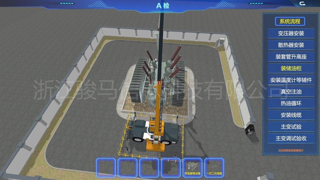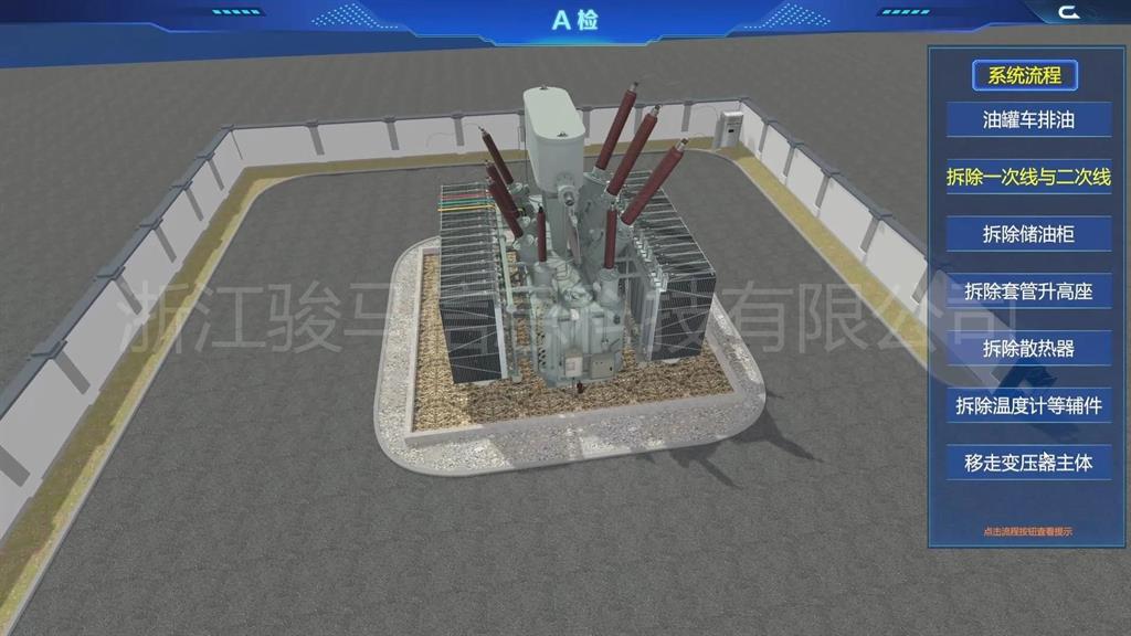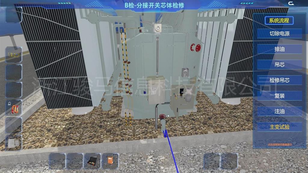 在軟件中,用戶可以體驗到每個設(shè)備的維護工作,包括變壓器、分接開關(guān)、儲油柜、散熱器、套管、瓦斯繼電器、溫度計和在線濾油機等關(guān)鍵部件。通過模擬體驗,掌握變壓器維護操作。