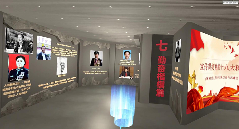 本次項(xiàng)目配備了一臺(tái)VR互動(dòng)設(shè)備、7臺(tái)VR一體機(jī)設(shè)備,內(nèi)容涵蓋了VR長(zhǎng)征爬雪山互動(dòng)、VR過(guò)草地互動(dòng)、新中國(guó)成立70周年成就館、VR廉政館、VR黨史館等一系列經(jīng)典黨建體驗(yàn)內(nèi)容。